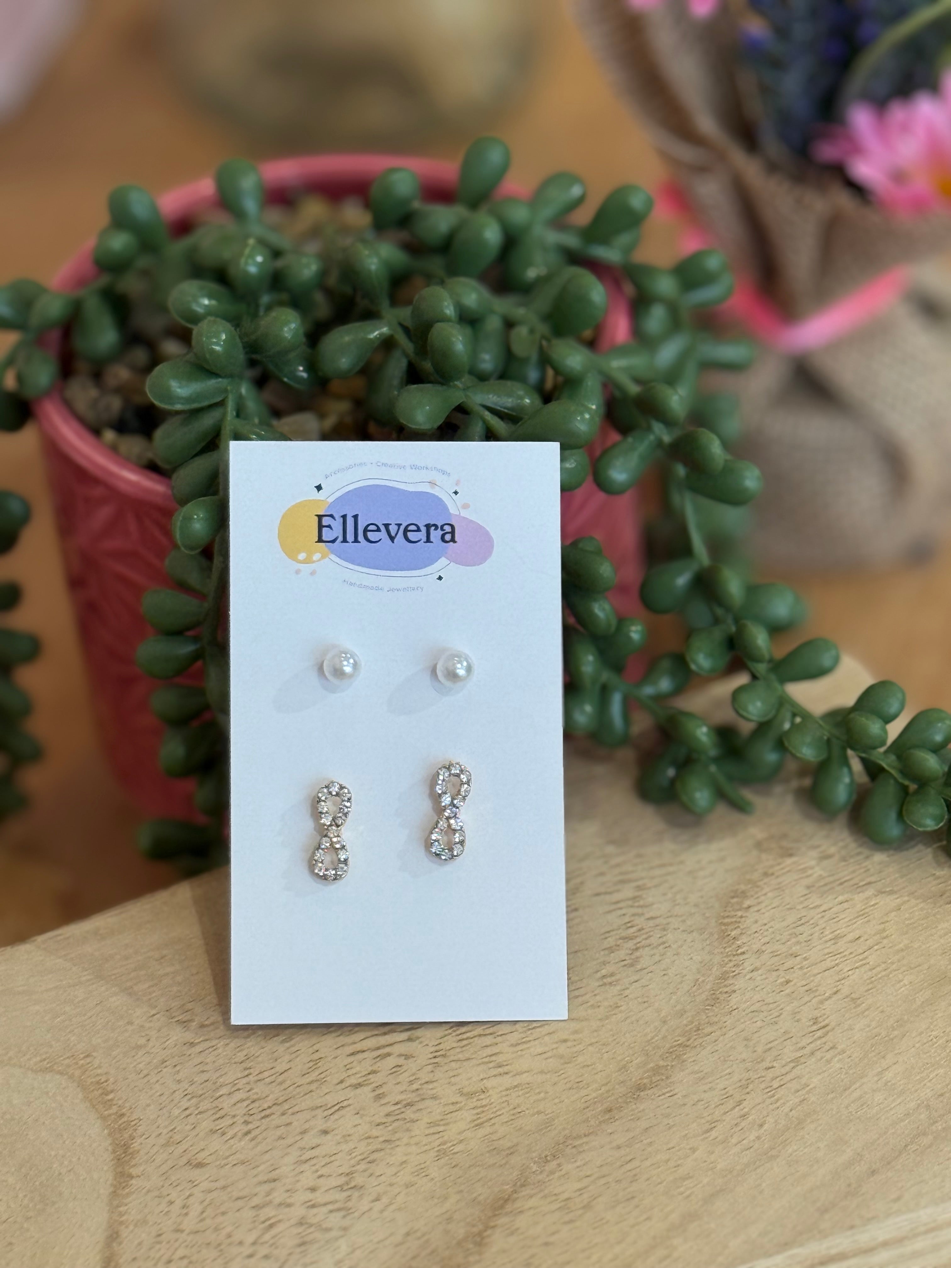Add timeless elegance to your jewellery collection with this Pearl & Crystal Stud Earring Set. Featuring two pairs of versatile studs – one classic faux pearl and one sparkling infinity crystal design – this set is perfect for everyday wear or special occasions. Mix and match to suit your style, or gift them to someone special.