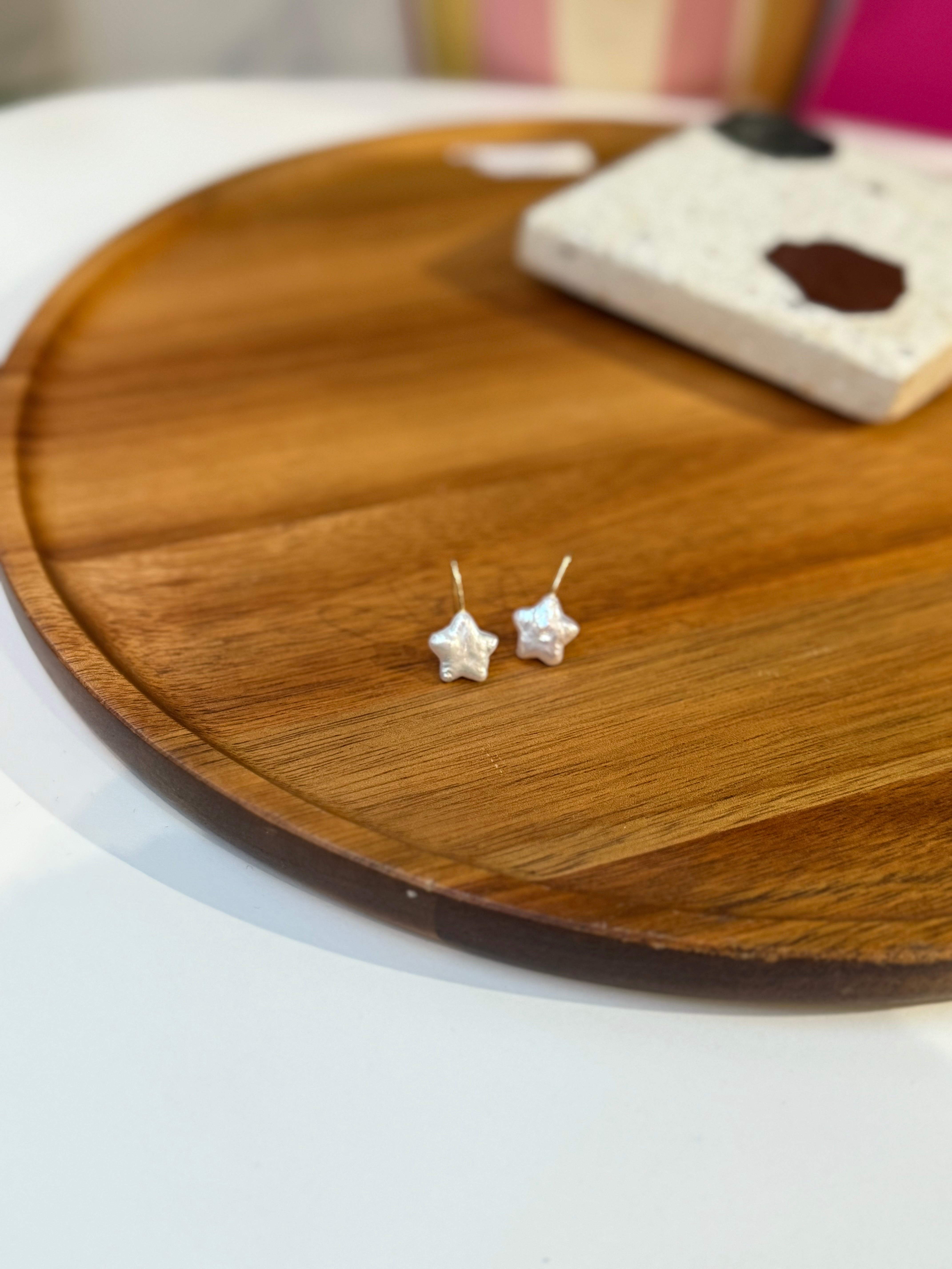 These Star Pearl Drop Earrings feature softly iridescent, star-shaped pearls suspended from delicate gold-tone hooks. Lightweight and effortlessly pretty, they’re perfect for daily wear, gifting, or pairing with your favourite celestial pieces.