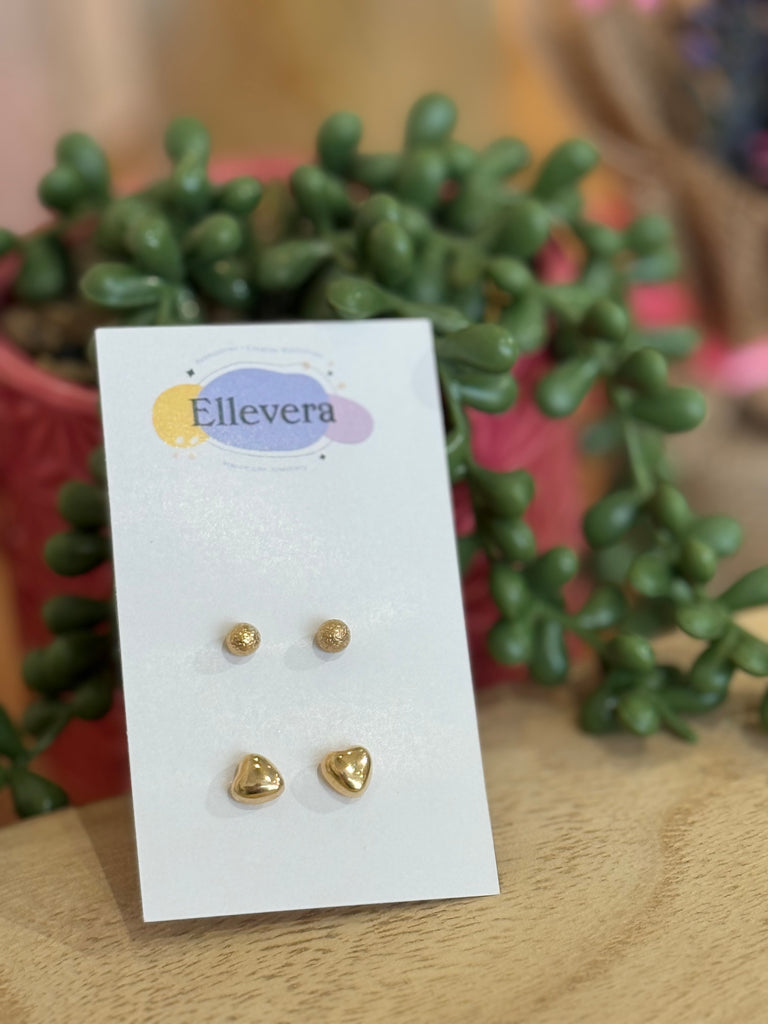 Two-pair stud earring set displayed on Ellevera card – one pair of gold ball studs and one pair of crystal studs.