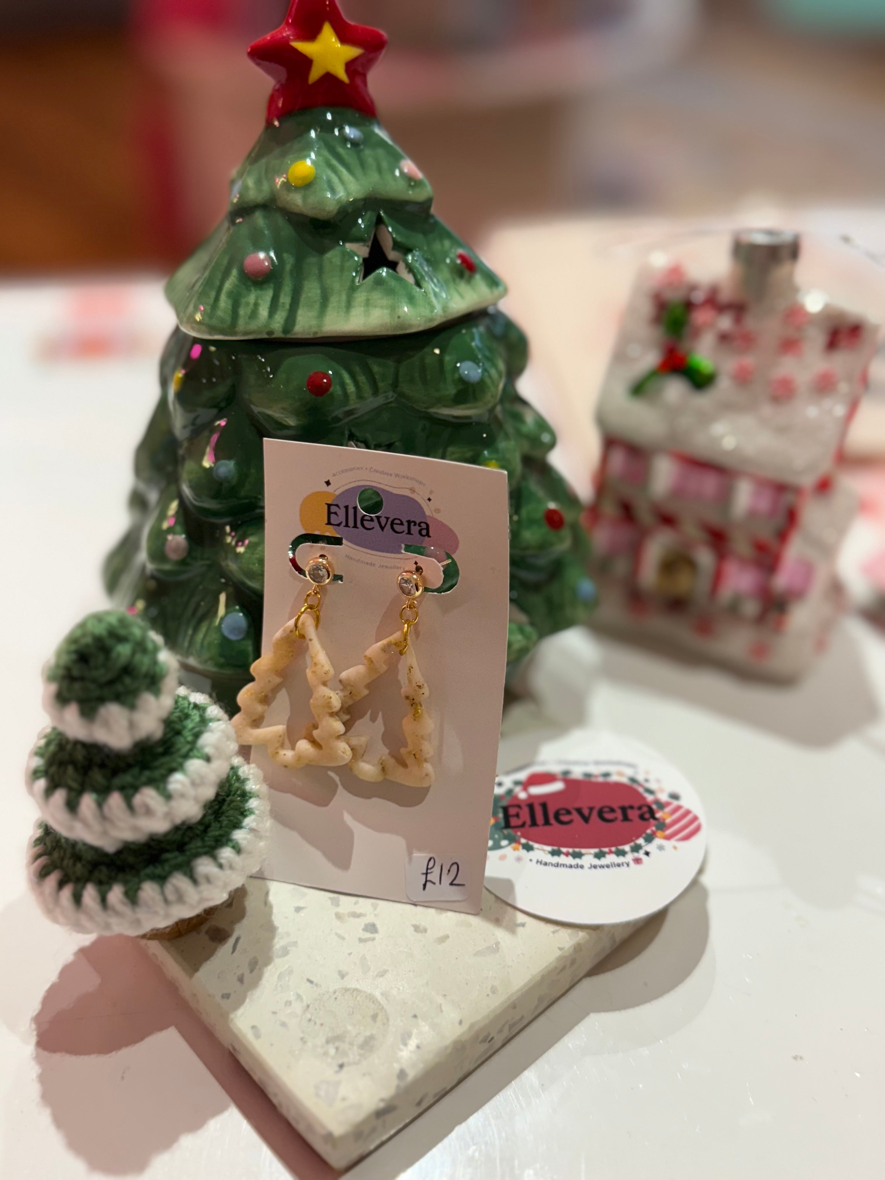 These handcrafted marbled Christmas tree earrings bring a soft and magical winter feel to your holiday styling ❄️🌲
