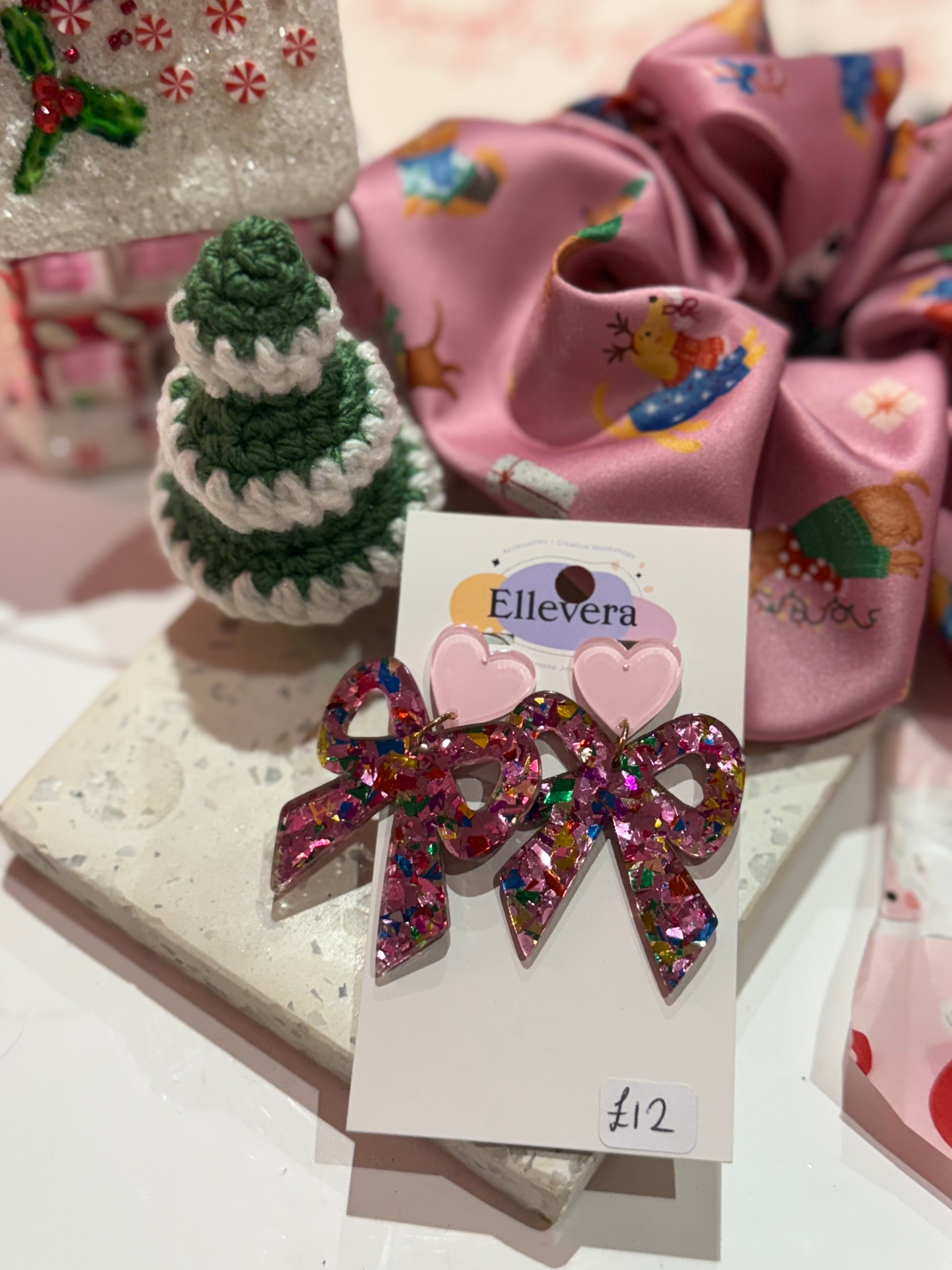 Sparkle through the festive season with these pink glitter bow statement earrings!