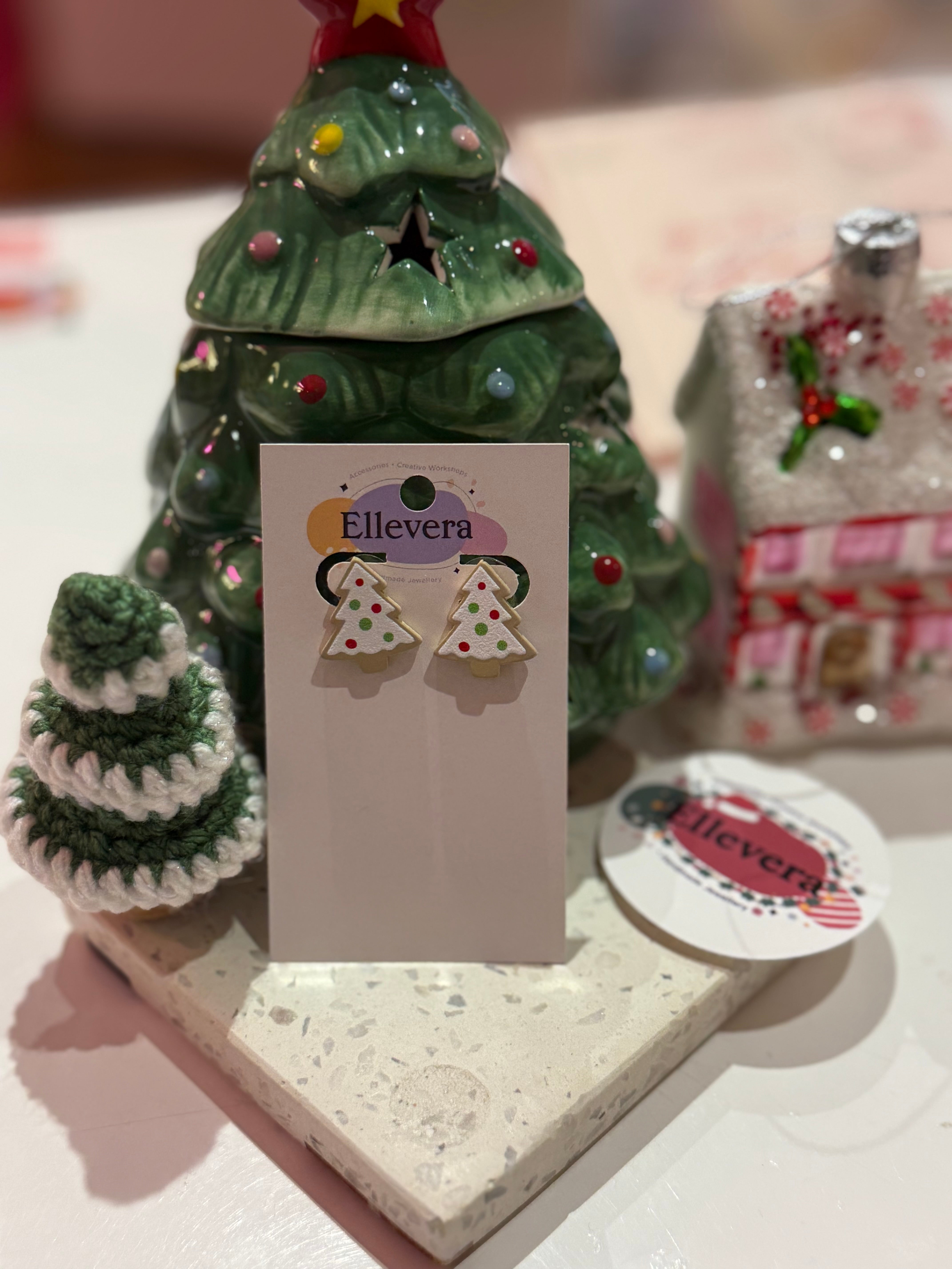 Add a sweet touch of holiday magic with these white acrylic Christmas tree studs featuring colourful baubles and golden bases 🎀